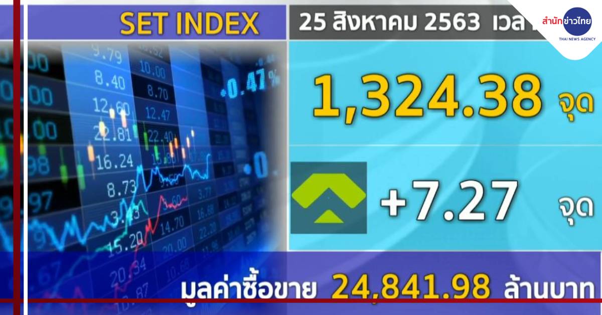 กทม. 25 ส.ค. – ตลาดหุ้นไทยช่วงเที่ยงบวกเล็กน้อยอยู่ที่ 7.27 จุด ที่ระดับ 1,324.38 จุด มูลค่าการซื้อขาย 24,841.98 ล้านบาท ข้อตกลงการค้าจีนและสหรัฐ ที่จะผ่อนคลายมากขึ้น ทำให้หุ้นเอเชียปรับขึ้นมาได้ ด้านเงินบาทอยู่ที่ 31.51 บาทต่อดอลลาร์สหรัฐ ส่วนราคาทองคำเช้านี้ลดลง 150 บาท ทองคำแท่ง ขายออกบาทละ 28,800 บาท.-สำนักข่าวไทย