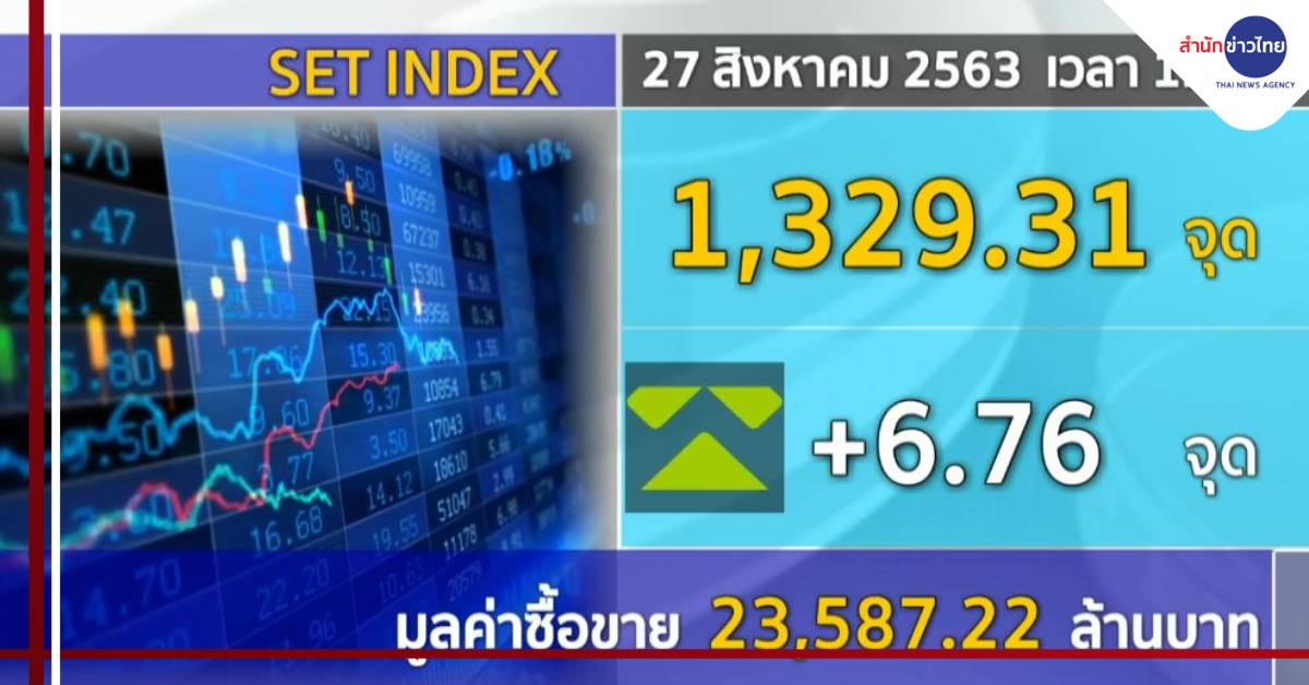 กทม. 27 ส.ค. – หุ้นไทยเช้านี้แกว่งตัวในกรอบแคบๆ เพราะรอปัจจัยใหม่ นักลงทุนยังคงจับตาถ้อยแถลงประธานเฟด และความขัดแย้งระหว่างจีนและสหรัฐ รวมถึงติดตามความหน้าโครงการภูเก็ตโมเดล ดัชนีช่วงเที่ยง +6.76 จุด ที่ระดับ 1,329.31 จุด มูลค่าการซื้อขาย 23,587.22 ล้านบาท
