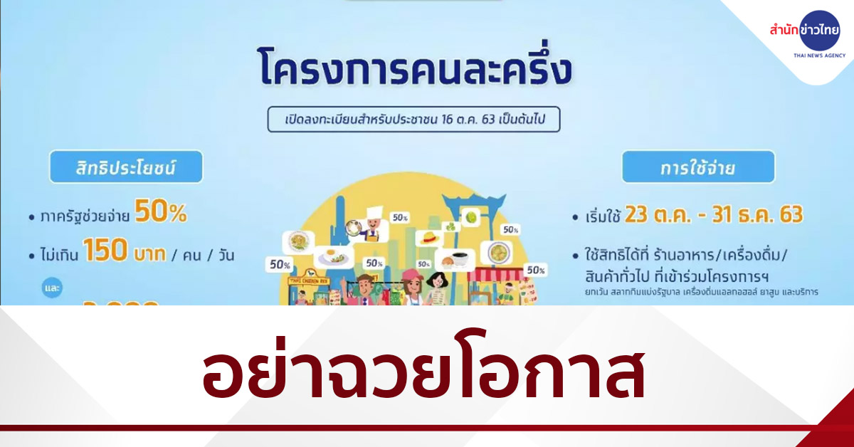 กรุงเทพฯ 1 ธ.ค. – คลังขอความร่วมมือร้านค้าโครงการคนละครึ่งอย่าฉวยโอกาสขึ้นราคาสินค้า