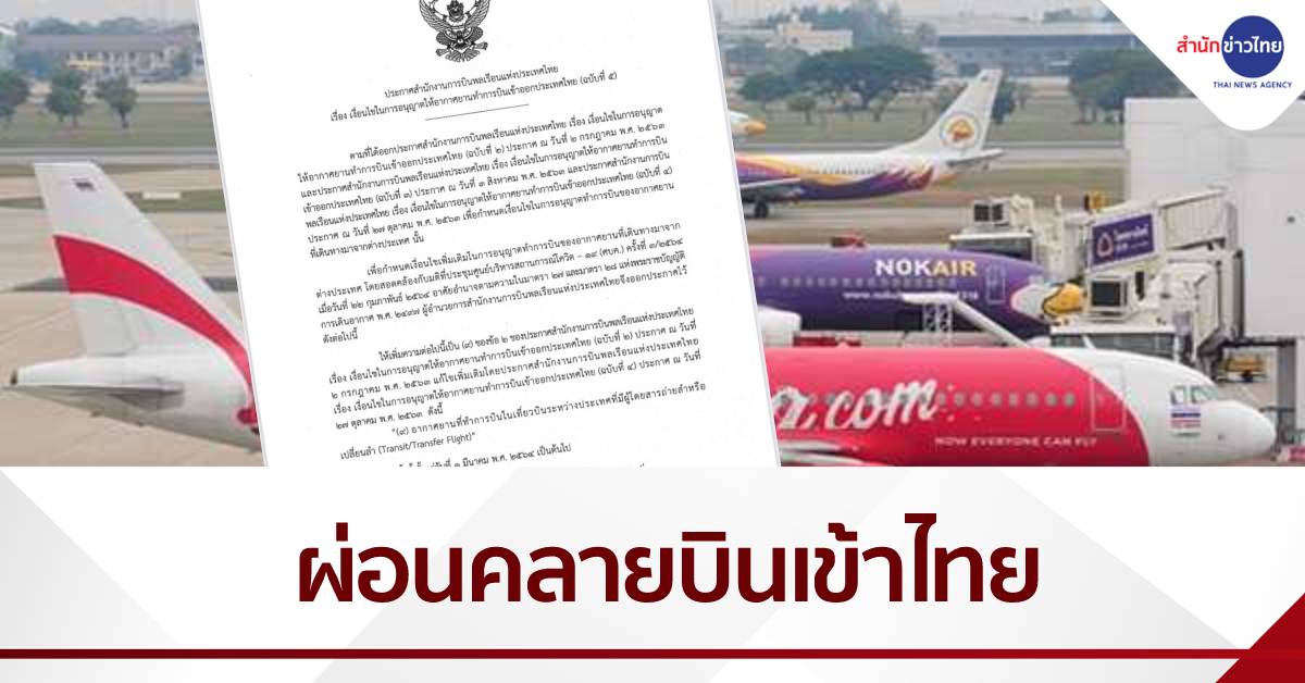 กรุงเทพฯ 26 ก.พ.-ด่วน! กพท. ออกประกาศให้เครื่องบินเส้นทางระหว่างประเทศที่มีผู้โดยสารถ่ายลำหรือเปลี่ยนลำ (Transit/Transfer flight) สามารถบินเข้าประเทศไทยได้แล้ว ตั้งแต่วันที่ 1 มี.ค.64