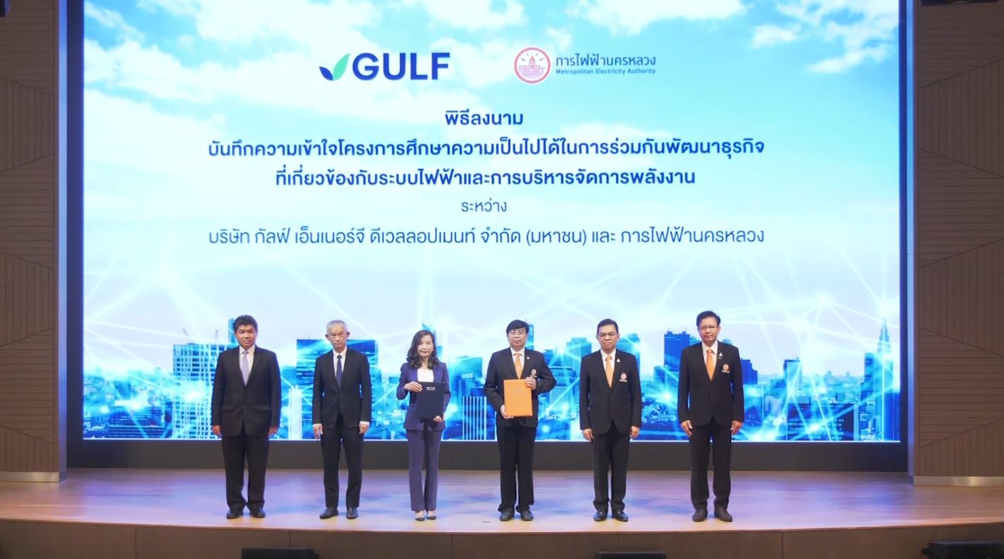 นายวีรวัจน์ บัวทอง รองผู้ว่าการการไฟฟ้านครหลวง (MEA) ลงนามบันทึกความเข้าใจ (MOU) กับนางพรทิพา ชินเวชกิจวานิชย์ รองประธานเจ้าหน้าที่บริหาร บริษัท กัลฟ์ เอ็นเนอร์จี ดีเวลลอปเมนท์ จำกัด (มหาชน) เพื่อดำเนินโครงการศึกษาความเป็นไปได้ในการร่วมกันพัฒนาธุรกิจที่เกี่ยวข้องกับระบบไฟฟ้าและการบริหารจัดการพลังงาน โดยเน้นเรื่องระบบผลิตไฟฟ้าจากพลังงานหมุนเวียน ระบบจัดการพลังงานในอาคาร ระบบกักเก็บพลังงาน ระบบทำความเย็นแบบรวมศูนย์และการซื้อขายพลังงานไฟฟ้าผ่าน Energy Trading Platform เพื่อตอบสนองความต้องการผู้ใช้ไฟฟ้า ทั้งภาคอุตสาหกรรมและครัวเรือนอย่างมีประสิทธิภาพ ตอบโจทย์เทรนด์พลังงานแห่งอนาคต
