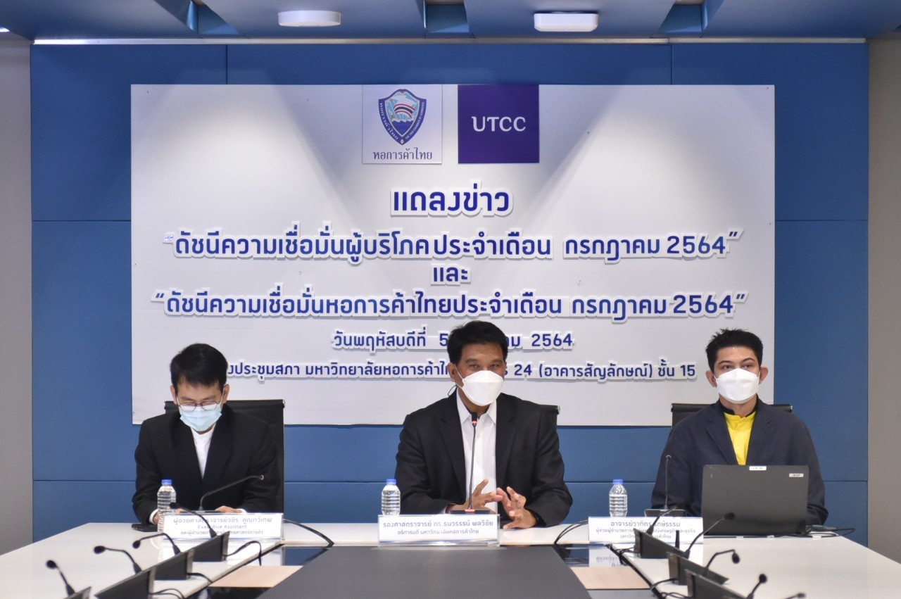 ศูนย์พยากรณ์เศรษฐกิจและธุรกิจ มหาวิทยาลัยหอการค้าไทย เปิดเผยผลสำรวจดัชนีความเชื่อมั่นของผู้บริโภคเดือนกรกฎาคม 2564 พบว่า ดัชนีความเชื่อมั่นของผู้บริโภคปรับตัวลดลงทุกรายการ โดยเฉพาะดัชนีโดยรวมอยู่ในระดับต่ำสุดเป็นประวัติการณ์ในรอบ 274 เดือนหรือ 22 ปี 10 เดือนนับตั้งแต่ทำการสำรวจในเดือนตุลาคม 2541 เป็นต้นมา เนื่องจากมีความกังวลในสถานการณ์การแพร่ระบาดของในประเทศไทยและการที่รัฐบาลกำหนดพื้นที่ควบคุมสูงสุด โดยออกมาตรการมาตรการล็อกดาวน์และเคอร์ฟิว 21.00-04.00 น. ส่งผลกระทบต่อการดำเนินชีวิตของประชาชน การทำธุรกิจ และภาวะเศรษฐกิจของประเทศ ประกอบกับความกังวลในสถานการณ์ทางการเมืองที่มีเสถียรภาพน้อยลงและการฉีดวัคซีนให้กับประชาชนที่ล่าช้าส่งผลให้ผู้บริโภครู้สึกว่าเศรษฐกิจไทยชะลอตัวลงและขาดแรงกระตุ้นในการฟื้นตัวทางเศรษฐกิจในอนาคต