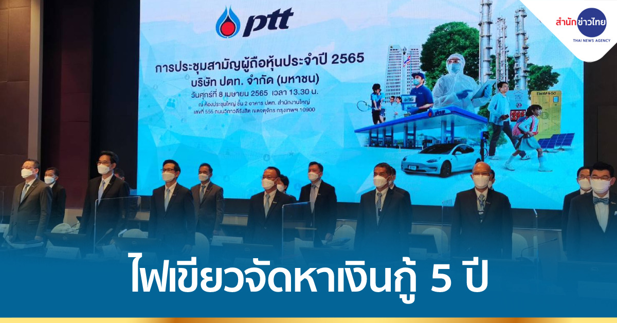 ปตท. 8 เม.ย. – ที่ประชุมผู้ถือหุ้น ปตท. ไฟเขียวแผนจัดหาเงินกู้ 5 ปี (2565-2569) วงเงินไม่เกิน 2 แสนล้านบาท รองรับขยายการลงทุน และเห็นชอบ “ชาญศิลป์” ดำรงตำแหน่งกรรมการ ย้ำตัดสินใจขั้นสุดท้ายตั้งโรงงานสร้างแพลตฟอร์มผลิตรถอีวีกลางปีนี้