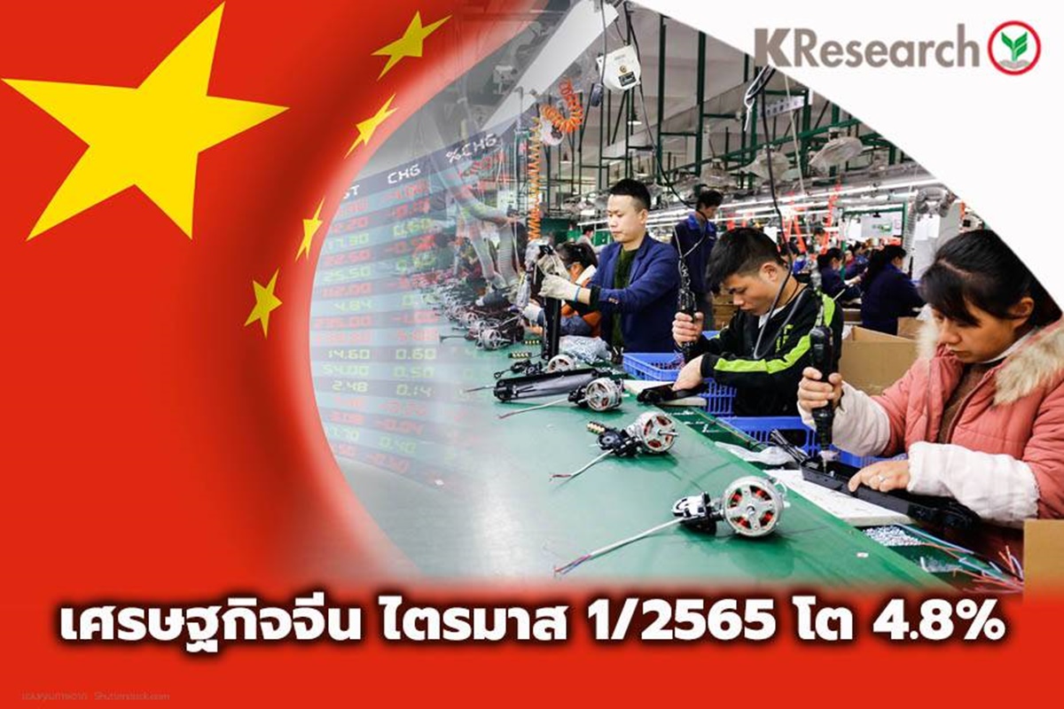 กรุงเทพฯ 18 เม.ย. – ศูนย์วิจัยกสิกรไทย รายงานว่า จากที่จีนประกาศตัวเลขเศรษฐกิจไตรมาส 1/2565 เติบโตร้อยละ 4.8 (YoY) และ 1.3 (QoQ) แม้เศรษฐกิจจีนจะแสดงแนวโน้มการฟื้นตัวได้ดีในไตรมาสแรก แต่จีนยังคงเผชิญปัจจัยเสี่ยงต่อการชะลอตัวของเศรษฐกิจในระยะที่เหลือของปี