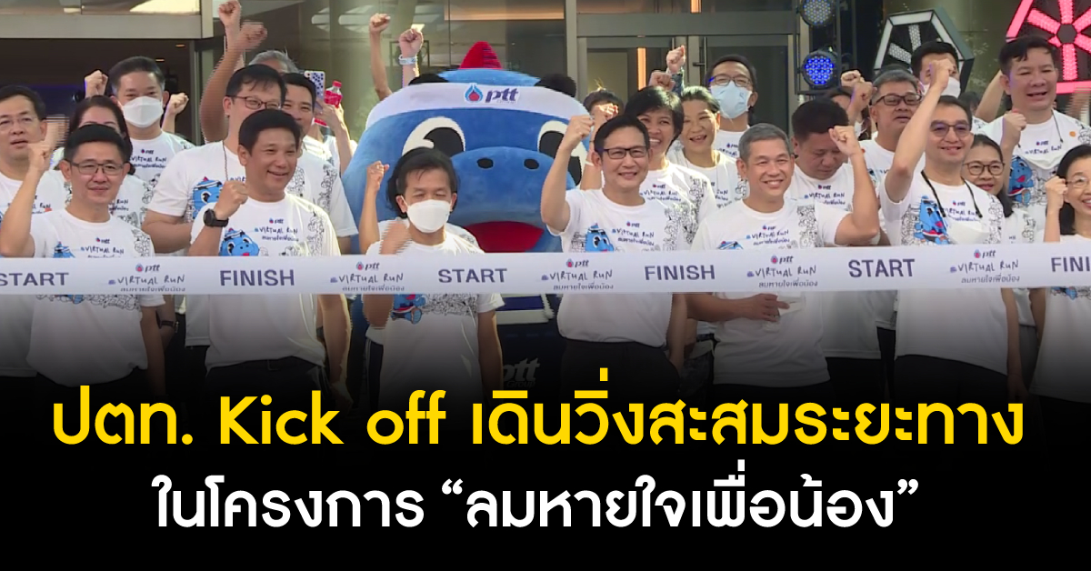 กรุงเทพฯ 13 พ.ค. – ปตท.เปิดตัวโครงการ “ลมหายใจเพื่อน้อง” กับกิจกรรม PTT Virtual Run เดินวิ่งสะสมระยะทาง ช่วยน้องกลับโรงเรียน ปีการศึกษา 2565 โดยทุกระยะทาง 10 กิโลเมตร ปตท.จะสมทบทุน 2,500 บาท ในกองทุนเพื่อความเสมอภาคทางการศึกษา (กสศ.)