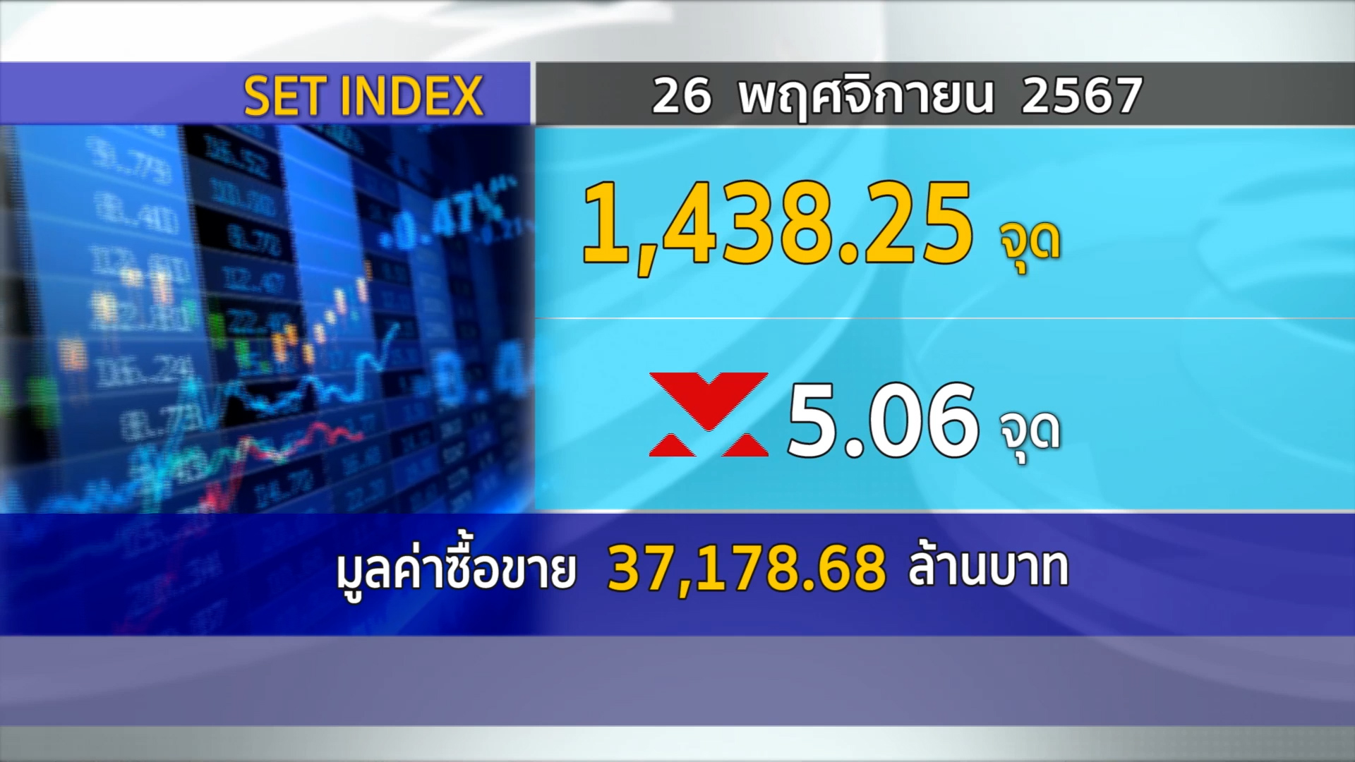 กทม. 26 พ.ย.- SET ปิดวันนี้ 1,438.25 จุด ลดลง 5.06 จุด หรือ (-0.35%) มูลค่าซื้อขาย 37,226.32 ล้านบาท