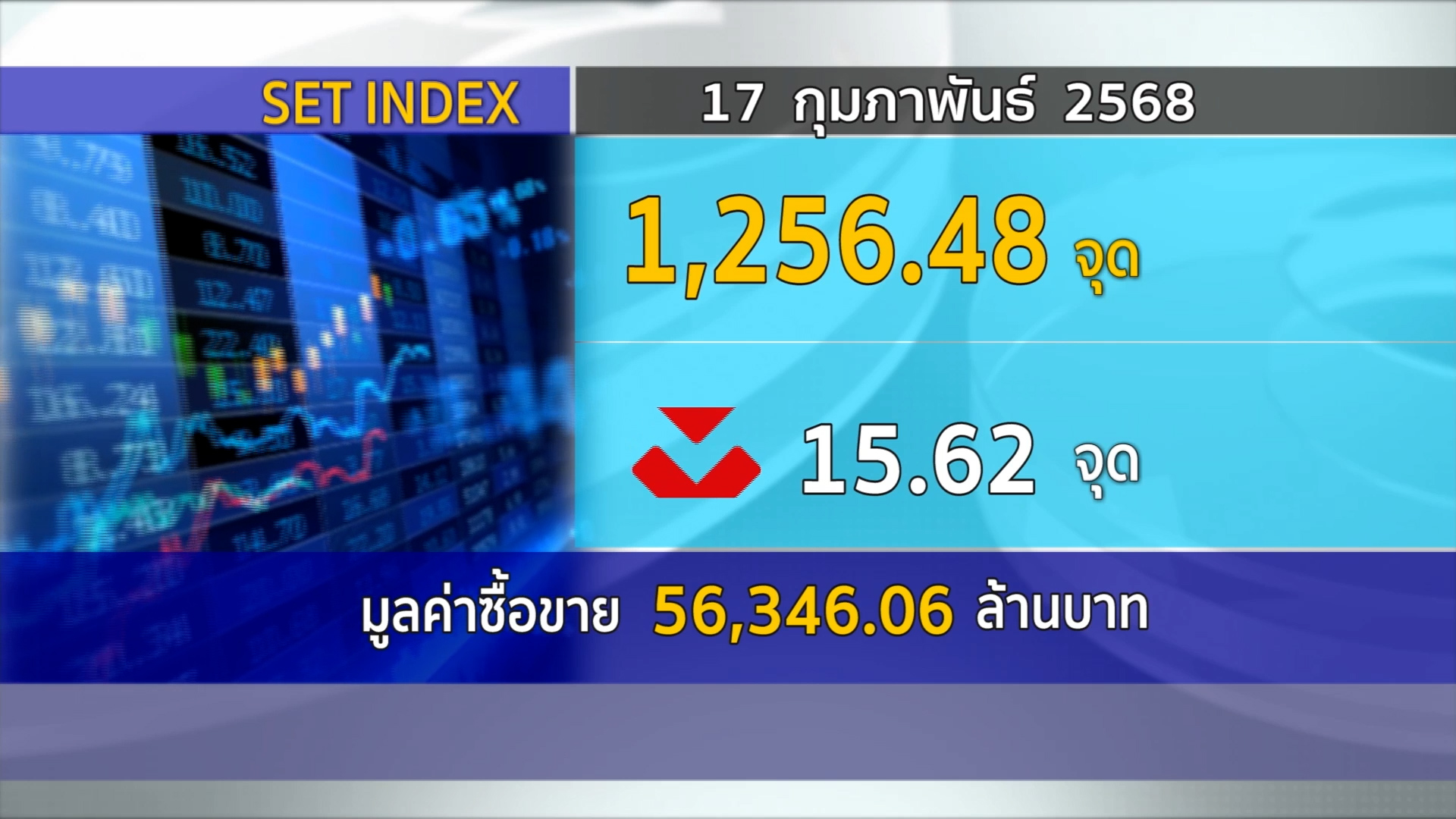 กทม. 17 ก.พ.- SET ปิดวันนี้ที่ 1,256.48 จุด ลดลง 15.62 จุด (-1.23%) มูลค่าซื้อขาย 56,376.50 ล้านบาท