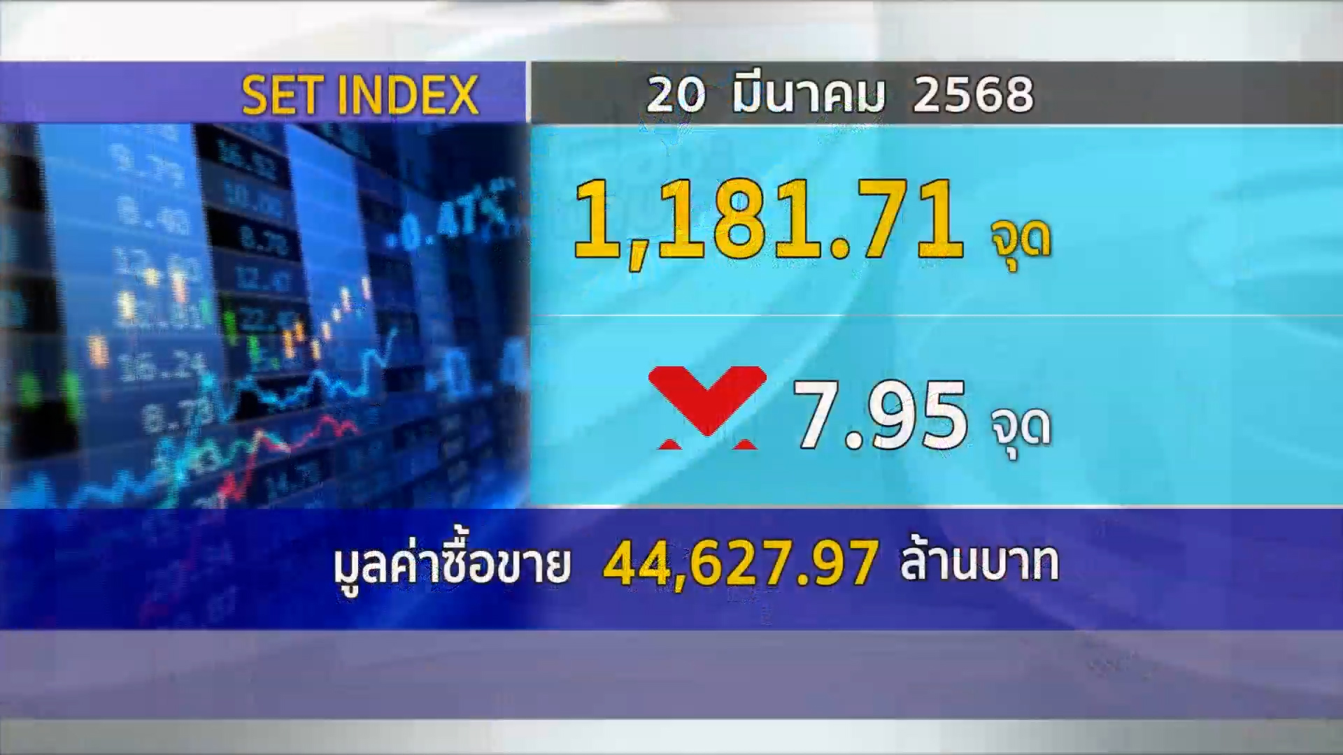 กทม. 20 มี.ค.- SET ปิดวันนี้ที่ 1,181.71 จุด ลดลง 7.95 จุด (-0.67%) มูลค่าซื้อขาย 44,645.06 ล้านบาท