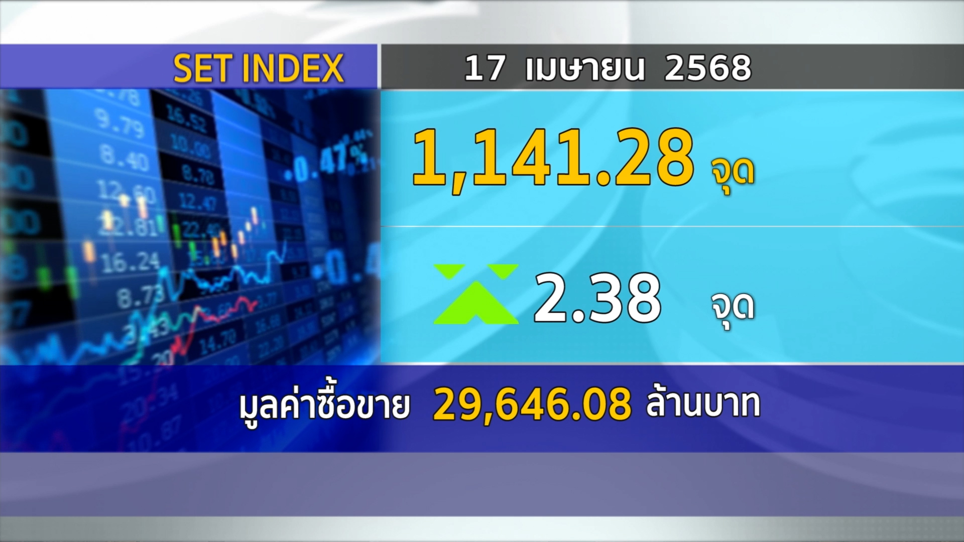 กทม.17 เม.ย.- ตลาดหุ้นไทยปิดวันนี้ 1,141.28 จุด เพิ่มขึ้น 2.38 จุด (+0.21%) มูลค่าซื้อขาย 29,808.44 ล้านบาท