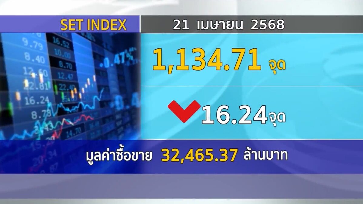 กทม. 21 เม.ย.-SET ปิดวันนี้ที่ 1,134.71 จุด ลดลง 16.24 จุด (-1.41%) มูลค่าการซื้อขาย 32,465.37 ล้านบาท