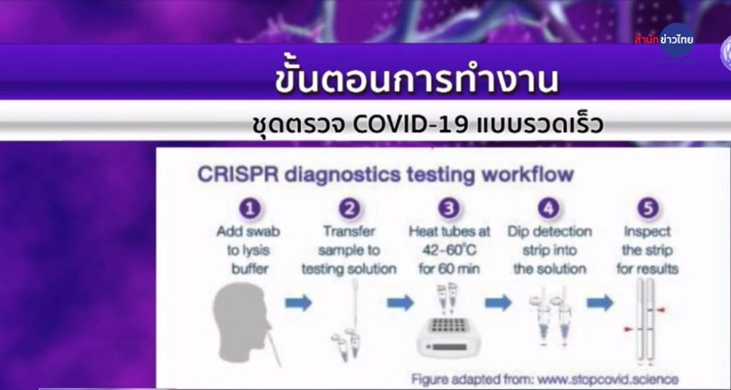 ชุดตรวจ Covid-19 พัฒนาได้รวดร็ว ส่วนหนึ่งเกิดจากแล็บ และนักวิจัยเชิงลึกของ VISTEC ในอนาคตเทคนิคนี้สามารถประยุกต์ใช้ในการตรวจเขื้อโรคประจำถิ่นอื่นๆ ของไทย. – สำนักข่าวไทย