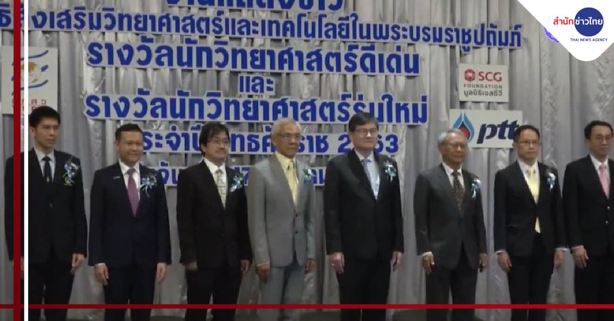 นายเอนก เหล่าธรรมทัศน์ รัฐมนตรีว่าการกระทรวงการอุดมศึกษา วิทยาศาสตร์ วิจัยและนวัตกรรม เป็นประธานพิธี แถลงข่าวเปิดตัว 2 นักวิทยาศาสตร์ดีเด่นและ 2 นักวิทยาศาสตร์รุ่นใหม่ประจำปี 2563 ที่ได้รับคัดเลือกจากมูลนิธิส่งเสริมวิทยาศาสตร์และเทคโนโลยีในพระบรมราชูปถัมภ์ เป็นรางวัลที่ให้กำลังใจแก่นักวิทยาศาสตร์ไทย นับเป็นการสร้างไอดอล ให้น้อง ๆ ใส่ใจงานด้านวิทยาศาสตร์ คิดค้นนวัตกรรรมเพื่อเป็นพื้นฐานในการพัฒนาและขับเคลื่อนการปฏิรูปเศรษฐกิจของประเทศให้เติบโตแบบยั่งยืน และจะเป็นส่วนหนึ่ง ช่วยยกระดับประเทศไทยให้ก้าวสู่การพัฒนาแบบก้าวกระโดด เช่นเดียวกับญี่ปุ่น เกาหลีใต้หรือสิงคโปร์ ซึ่งผลงานวิจัยที่ได้รับการคัดเลือกในปีนี้มีทั้งผลงานสร้างมูลค่าเพิ่มต่อยอดด้านอุตสาหกรรมอาหาร อุตสาหกรรมปิโตรเคมี ชีวภาพ การพัฒนาวัสดุแบบใหม่ด้านอิล็กทรอนิกส์ แฃะแบบจำลองคอมพิวเตอร์ เพื่อศึกษาปฏิกิริยาเคมีและสื่อการสอนวิทยาศาสตร์