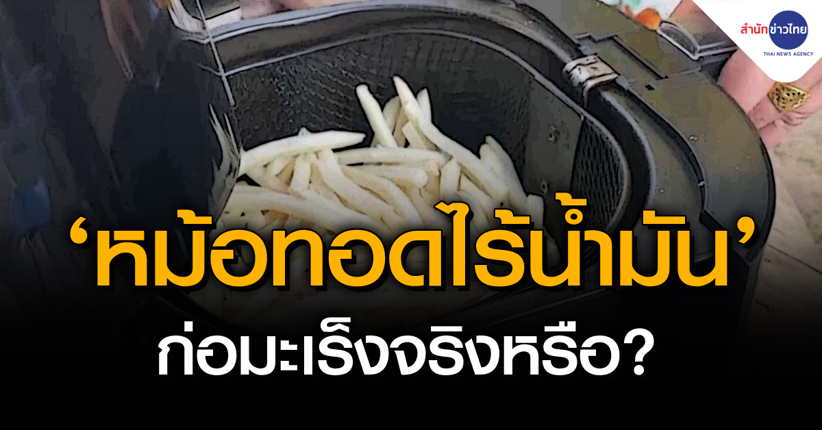 กรุงเทพฯ 2 มี.ค. – ข่าวหน่วยงานฮ่องกง ทดสอบทอดมันฝรั่งด้วยหม้อทอดไร้น้ำมัน แล้วพบสารก่อมะเร็ง มีการแชร์กันอย่างกว้างขวาง วันนี้ คุณขนิษฐา อมรเมศวรินทร์ จะพาไปหาคำตอบกับผู้เชี่ยวชาญว่า “หม้อทอดไร้น้ำมัน” ทำให้เกิดสารก่อมะเร็งจริงหรือไม่
