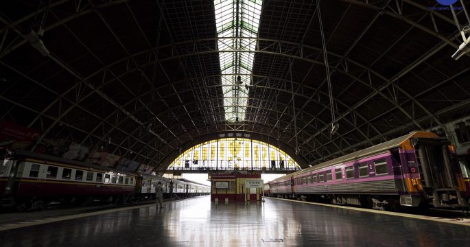 บรรยากาศสถานีรถไฟหัวลำโพงเงียบเหงา เมื่อเทียบกับปีก่อนๆ ในช่วงเทศกาลสงกรานต์ เนื่องจากรัฐ ขอความร่วมมือไม่ให้เดินทาง เพื่อลดการแพร่กระจายของโรคโควิด-19