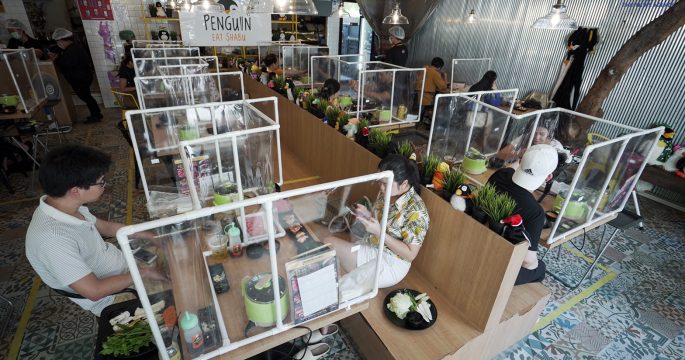 ร้านชาบูเริ่มเปิดร้าน สร้างฉากกั้นป้องกันโควิด-19 หม้อใครหม้อมัน