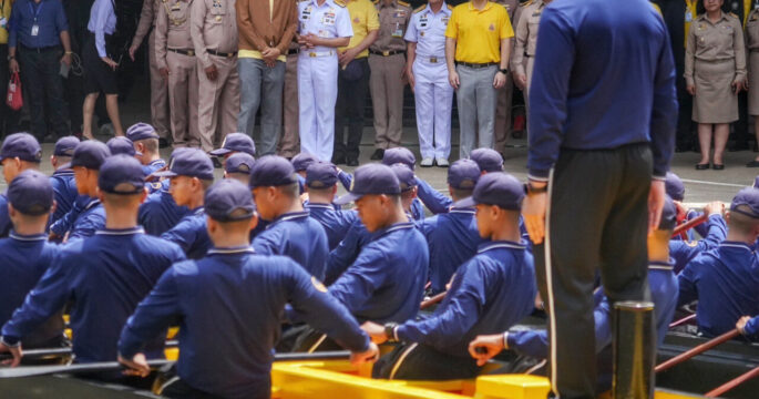 13 มิ.ย.2567 นายกรัฐมนตรี ตรวจความก้าวหน้าการเตรียมความพร้อม การจัดขบวนพยุหยาตราทางชลมารค ในการพระราชพิธีเสด็จพระราชดำเนินถวายผ้าพระกฐิน ณ วัดอรุณราชวรารามราชวรวิหาร นายเศรษฐา ทวีสิน นายกรัฐมนตรี ตรวจความก้าวหน้าการเตรียมความพร้อม การจัดขบวนพยุหยาตราทางชลมารค ในการพระราชพิธีเสด็จพระราชดำเนินถวายผ้าพระกฐิน ณ วัดอรุณราชวรารามราชวรวิหาร ในวันอาทิตย์ที่ 27 ตุลาคม 2567 การตรวจความก้าวหน้า ประกอบด้วย การซ่อมทำเรือพระที่นั่งและเรือรูปสัตว์ การฝึกกำลังพลฝีพายเรือพระราชพิธี พร้อมทั้งให้โอวาท โดยมี พลเรือเอก อะดุง พันธุ์เอี่ยม ผู้บัญชาการทหารเรือ นายพนมบุตร จันทรโชติ อธิบดีกรมศิลปากร และ พลเรือโท วิจิตร ตันประภา รองเสนาธิการทหารเรือ/ประธานคณะกรรมการจัดเตรียมความพร้อมขบวนเรือพระราชพิธี ร่วมให้การต้อนรับ ณ แผนกเรือราชพิธี กองเรือเล็ก กรมการขนส่งทหารเรือ เขตบางกอกน้อย กรุงเทพฯ และพิพิธภัณฑสถานแห่งชาติเรือพระราชพิธี กรมศิลปากร ทั้งนี้ นายกฯ กล่าวให้โอวาทว่า ยินดีที่ได้มาพบกับกำลังพลทุกคนในวันนี้ พระราชพิธีเสด็จพระราชดำเนินถวายผ้าพระกฐิน ด้วยขบวนพยุหยาตราทางชลมารคมีความสำคัญ และหน้าที่ที่ทุกท่านได้รับผิดชอบเป็นการร่วมแสดงความจงรักภักดีแด่พระบาทสมเด็จพระเจ้าอยู่หัว ขอให้กำลังพลทุกคนภาคภูมิใจ […]