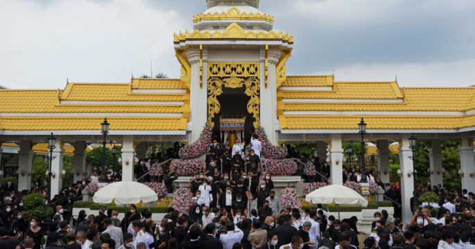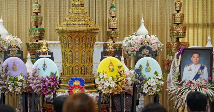 29 มิ.ย.2566 บรรยากาศพิธีพระราชทานเพลิงศพนายณรงค์ศักดิ์ โอสถธนากร ผู้ว่าราชการจังหวัดปทุมธานี หรือผู้ว่าฯ หมูป่า โดยมี พล.อ.ประยุทธ์ จันทร์โอชา นายกรัฐมนตรี เป็นประธานในพิธี.ทั้งนี้ รวมไปถึงผู้ที่เคยร่วมปฏิบัติการกู้ภัยถ้ำหลวง ทีมหมูป่าอะคาเดมี และประชาชนจำนวนมาก ร่วมวางดอกไม้จันทน์ไว้อาลัยให้กับ นายณรงค์ศักดิ์ เป็นครั้งสุดท้าย ท่ามกลางบรรยากาศโศกเศร้า ที่วัดพระศรีมหาธาตุวรมหาวิหาร บางเขน กรุงเทพฯ.ภาพ ชำนาญวุฒิ สุขุมวานิช