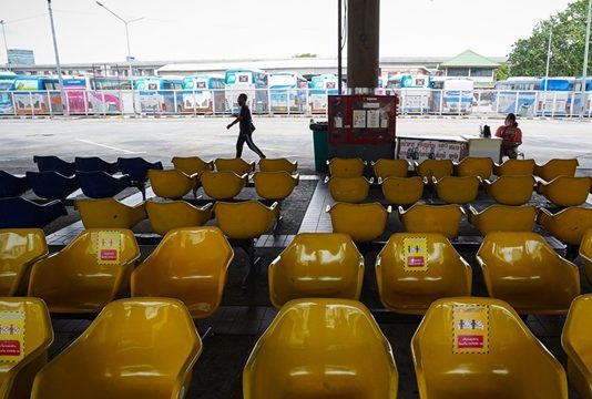 วันที่ 21 ก.ค.64 บรรยากาศที่สถานีขนส่งเป็นไปอย่างเงียบเหงา เนื่องจากทาง บขส.ประกาศหยุดให้บริการเดินรถทุกเส้นทาง โดยเริ่มตั้งแต่วันนี้ (21 ก.ค.- 2 ส.ค.) ที่ สถานีขนส่งผู้โดยสารกรุงเทพฯ (หมอชิต) ทั้งนี้เนื่องจากสถานการณ์การแพร่ระบาดของโควิด-19 ที่มีความรุนแรงเพิ่มขึ้นอย่างต่อเนื่อง จึงทำให้รัฐบาลต้องเพิ่มมาตรการป้องกันการแพร่ระบาดขั้นสูงสุด อีกทั้งขอความร่วมมือประชาชนงดหรือชะลอการเดินทางข้ามเขตพื้นที่จังหวัดที่ไม่มีเหตุจำเป็น เพื่อควบคุมสถานการณ์การแพร่ระบาด ซึ่งทาง บขส. ขอแจ้งหยุดให้บริการเดินรถเส้นทางภาคเหนือ ภาคตะวันออกเฉียงเหนือ (อีสาน) และภาคตะวันออก และภาคใต้ ทุกเส้นทางชั่วคราว ตั้งแต่วันที่ 21 กรกฎาคม -วันที่ 2 สิงหาคม 2564 หรือจนกว่าจะมีประกาศคำสั่งเปลี่ยนแปลง สอบถามข้อมูลเพิ่มเติมโทร Call Center 1490 เรียก บขส. ตลอด 24 ชั่วโมง ภาพ ชำนาญวุฒิ สุขุมวานิช