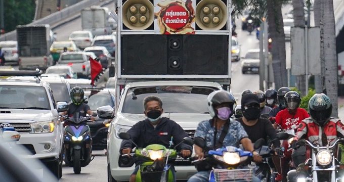 สำรวจบรรยากาศวันแรกที่ทาง ศบค.ประกาศดำเนินมาตรการเข้มงวด ห้ามออกนอกเคหสถาน ช่วงเวลา 21.00-04.00 น. โดยรอบอนุสาวรีย์ชัยสมรภูมิ พบว่า ร้านค้าโดยรอบเริ่มทยอยปิดร้านกันตั้งแต่ก่อนเวลา 19.00 น. ขณะที่ ขสมก.ปรับเวลาให้บริการเป็น 05.30-20.00 น. โดยมีเจ้าหน้าที่คอยดูแล จัดจำนวนคน เพื่อลดความแออัดบนรถประจำทาง และเมื่อเริ่มเข้าสู่ช่วงเวลา 21.00 น. ตามมาตรการเคอร์ฟิว ที่กำหนดห้ามออกนอกเคหสถาน ตั้งแต่ 21.00-04.00 น. บนถนนที่เคยมีรถหนาแน่น ก็ค่อยๆ โล่งขึ้นจนเหลือแต่ถนนที่ว่างเปล่า ทั้งนี้ มาตรการนี้จะบังคับใช้เป็นเวลา 14 วัน เพื่อควบคุมการแพร่ระบาดของโรคโควิด-19 ภาพ : ชำนาญวุฒิ สุขุมวานิช