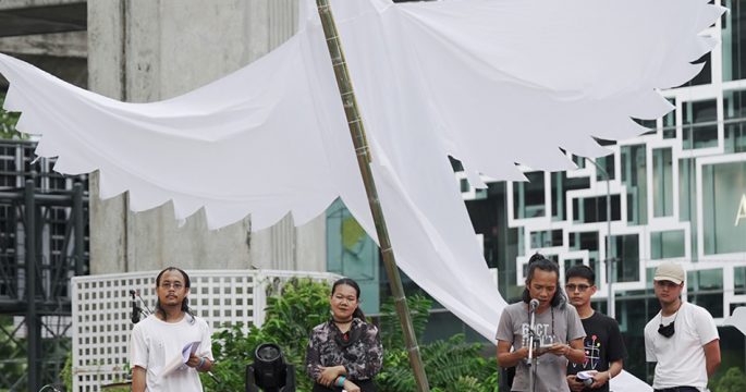 สนามหลวง 19 ก.ย. – เวลา 18.55 น. พิธีกรบนเวทีประกาศเชิญชวนประชาชนและผู้ชุมนุม เดินขบวนไปที่ทำเนียบรัฐบาลในวันที่ 20 ก.ย.นี้ เพื่อขับไล่ พล.อ.ประยุทธ์ จันทร์โอชา นายกฯ และ รมว.กลาโหม โดยมีผู้ชุมนุมร่วมกำมือพร้อมร่วมตะโกนขับไล่ “เผด็จการออกไป” อย่างไรก็ตามแกนนำแจ้งว่าจะปักหลักค้างคืนที่สนามหลวงและจะเคลื่อนขบวนไปยังทำเนียบรัฐบาลในเวลา 08:00 น. ของวันพรุ่งนี้ (20 ก.ย.) 📷 ชำนาญวุฒิ สุขุมวานิช ช่างภาพ สำนักข่าวไทย