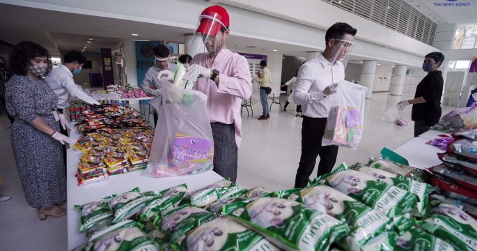 อสมท ระดมจิตอาสาแพ็คถุงยังชีพ ช่วยเหลือเด็กในโรงเรียนชายแดน จ.กาญจนบุรี ถวายเป็นพระราชกุศลแด่สมเด็จพระนางเจ้าฯ พระบรมราชินี ที่โถงชั้น 1 อาคารอำนวยการ บมจ.อสมท มีการจัดกิจกรรมจิตอาสาบำเพ็ญประโยชน์ MCOT CARES U (เอ็มคอท แคร์ ยู) “มีแล้วแบ่งปัน”