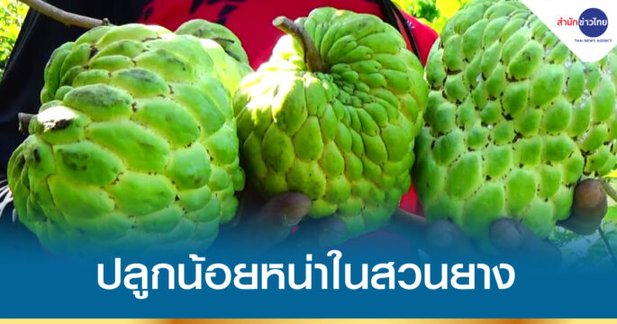 เกษตรกร ต.นาหมื่นศรี อ.นาโยง จ.ตรัง ปรับพื้นที่ที่เคยปลูกยางพารา หันมาปลูกน้อยหน่า พันธุ์เพชรปากช่อง กว่า 300 ต้น เก็บขายได้ปีละ 2-3 รุ่น สร้างรายได้หลักแสนบาทต่อปี