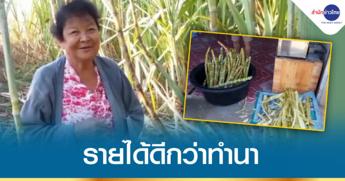 คุณยายวัย 74 ปี ชวนลูกหลานหันมาปลูกอ้อยหวาน คั้นน้ำขายหน้าบ้าน และตัดท่อนพันธุ์ขาย รายได้ดีกว่าทำนาขายข้าวหลายเท่าตัว