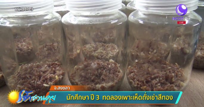 นักศึกษาปี 3 คณะเทคโนโลยีการเกษตร มหาวิทยาลัยราชภัฏสงขลา ทดลองเพาะเห็ดถั่งเช่าสีทองในขวดแก้ว ในห้องติดแอร์ ต่อยอดจากการผลิตเห็ดหลินจือแดงที่ประสบความสำเร็จส่งขายทั่วประเทศ มาทดลองเพาะ “เห็ดถั่งเช่าสีทอง” เพราะตลาดต้องการสูง