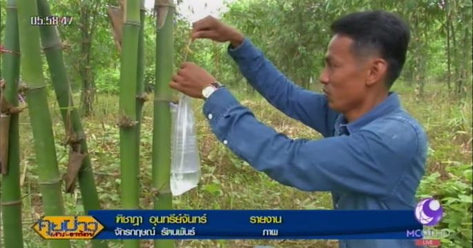 จ.สงขลา เกษตรกรในพื้นที่ศึกษาหาความรู้ปลูกไผ่กิมซุงจากคนรุ่นก่อน เพื่อเจาะนำน้ำไผ่บริสุทธิ์จากต้นสดๆ บรรจุขวด ส่งขายภายในพื้นที่ และยังช่วยเรื่องสุขภาพขับสารพิษในร่างกายด้วย