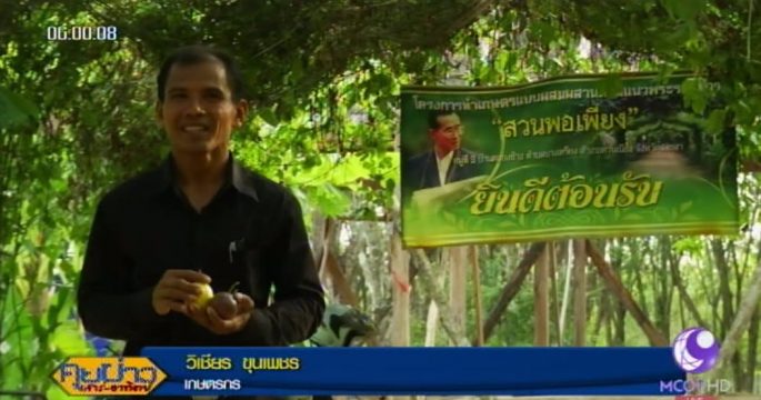 ผู้ใหญ่บ้านใน อ.ตะกั่วทุ่ง จ.พังงา ผันตัวเองมาทำเกษตรตามแนวพระราชดำริเศรษฐกิจพอเพียง มีรายได้จุนเจือครอบครัว และเป็นไร่ต้นแบบให้กับลูกบ้านได้เป็นแบบอย่างในการทำเกษตรตามรอยพ่อ