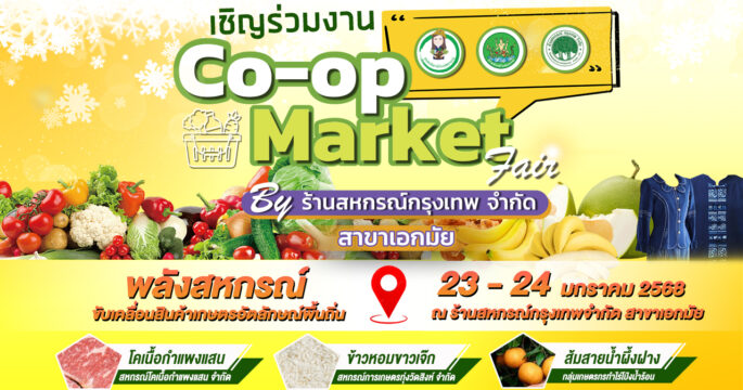 “Co-op Market Fair พลังสหกรณ์ ขับเคลื่อนสินค้าเกษตรอัตลักษณ์พื้นถิ่น By ร้านสหกรณ์กรุงเทพ จำกัด สาขาเอกมัย” พบกับผลิตภัณฑ์สินค้าดีมีคุณภาพของสหกรณ์นำมาจำหน่ายสู่คนเมือง