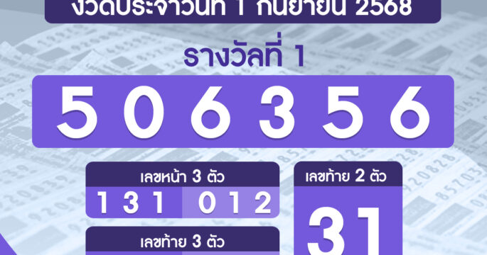 ผลรางวัลสลากกินแบ่งรัฐบาล งวดวันที่ 1 กันยายน 2568