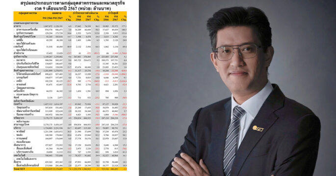 กรุงเทพฯท 25 พ.ย.- บจ. SET งบ 9 เดือน รายได้โต 7.8% จากช่วงเดียวกันปีก่อน สอดคล้องกับ GDP ที่ขยายตัวเพิ่มขึ้น จากท่องเที่ยวปรับตัวดีขึ้น ขณะที่กำไรสุทธิ 686,492 ล้านบาท ลดลง 5.4% จากธุรกิจเกี่ยวกับน้ำมันและปิโตรเคมีภัณฑ์จากราคาน้ำมันที่ลดลง นายอัสสเดช คงสิริ กรรมการและผู้จัดการ ตลาดหลักทรัพย์แห่งประเทศไทย เปิดเผยว่า บริษัทจดทะเบียน (บจ.) 810บริษัท คิดเป็น 98.8% จากทั้งหมด 820 บริษัท (รวม SET และ mai ที่มีกำหนดส่งงบการเงิน ณ สิ้นงวด 30 กันยายน 2567 และไม่รวมกองทุนรวมอสังหาริมทรัพย์ กองทุนรวมโครงสร้างพื้นฐาน และงบการเงินไม่ตรงรอบปีปฎิทิน) นำส่งผลการดำเนินงานไตรมาส 3 ปี 2567 พบว่ามี บจ. รายงานกำไรสุทธิ 617 […]