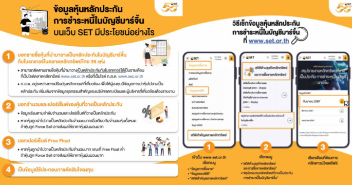 ตลาดหลักทรัพย์ฯ เผย 4 ข้อดี ที่มีการเผยแพร่ ข้อมูลหุ้นหลักประกันการชำระหนี้ในบัญชีมาร์จิ้นบนเว็บไซต์ SET เป็นข้อมูลใช้ประกอบการตัดสินใจของผู้ลงทุน