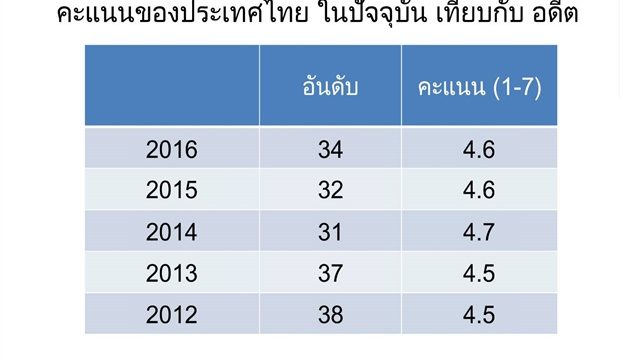 อันดับความสามารถแข่งขันระดับโลกไทยตกมาอยู่อันดับ 34 ของโลกจากปีที่แล้วอันดับ 32