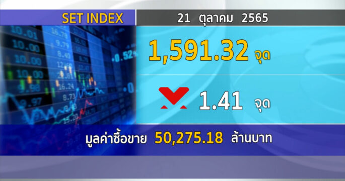 ตลาดหลักทรัพย์ ปิดวันนี้ที่ระดับ 1,591.32 จุด ลดลง 1.41 จุด (-0.09%) มูลค่าการซื้อขาย 50,2776.01 ล้านบาท
