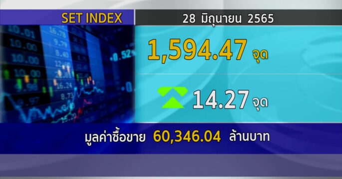 ตลาดหลักทรัพย์ ปิดวันนี้ที่ระดับ 1,594.47 จุด เพิ่มขึ้น 14.27 จุด (+0.90%) มูลค่าการซื้อขาย 60,346.04 ล้านบาท