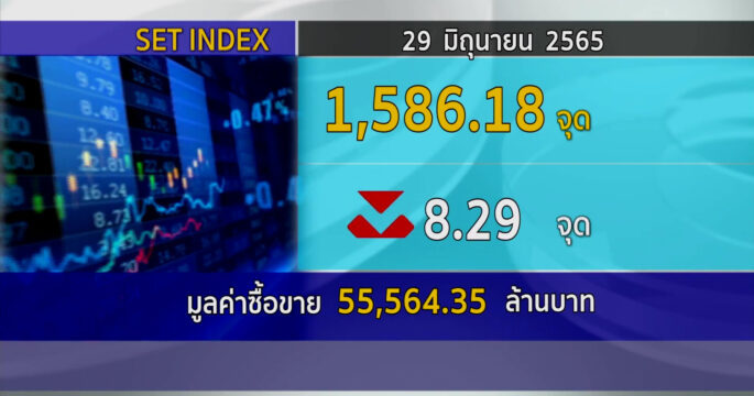 ตลาดหลักทรัพย์ ปิดวันนี้ที่ระดับ 1,586.18 จุด ลดลง 8.29 จุด (-0.52%) มูลค่าการซื้อขาย 55,564.35 ล้านบาท