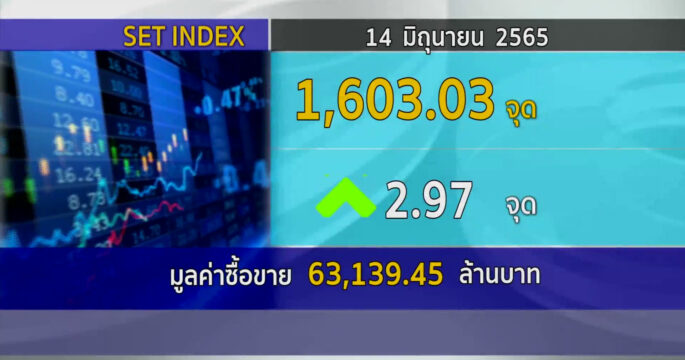 ตลาดหลักทรัพย์ ปิดวันนี้ที่ระดับ 1,603.03 จุด เพิ่มขึ้น 2.97 จุด (+0.19%) มูลค่าการซื้อขาย 63,139.45 ล้านบาท