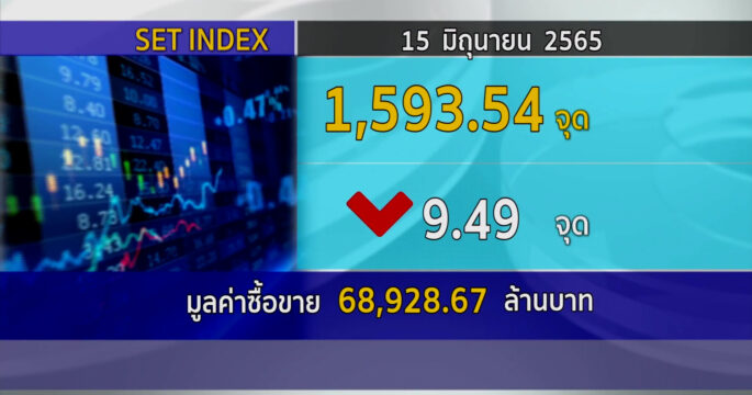 ตลาดหลักทรัพย์ ปิดวันนี้ที่ระดับ 1,593.54 จุด ลดลง 9.49 จุด (-0.59%) มูลค่าการซื้อขาย 68,928.67 ล้านบาท