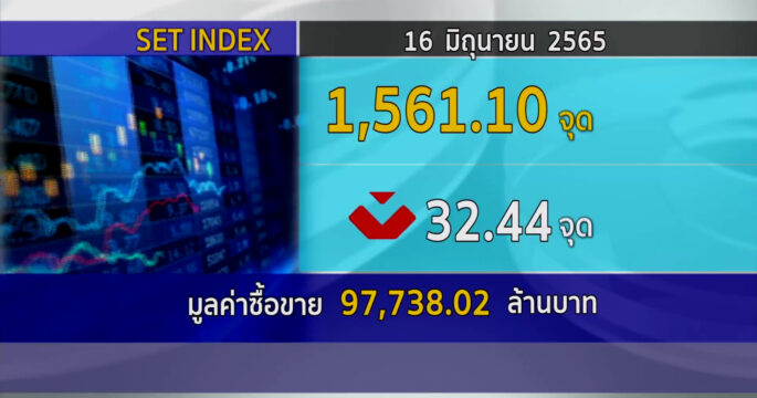 ตลาดหลักทรัพย์ ปิดวันนี้ที่ระดับ 1,561.10 จุด ลดลง 32.44 จุด (-2.04%) มูลค่าการซื้อขาย 97,738.02 ล้านบาท