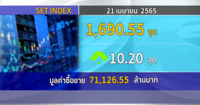 ตลาดหลักทรัพย์ ปิดวันนี้ที่ระดับ 1,690.55 จุด เพิ่มขึ้น 10.20 จุด (+0.61%) มูลค่าการซื้อขายราว 71,126.55 ล้านบาท รับแรงซื้อหุ้นขนาดกลางหลังราคาสินค้าโภคภัณฑ์ปรับลง