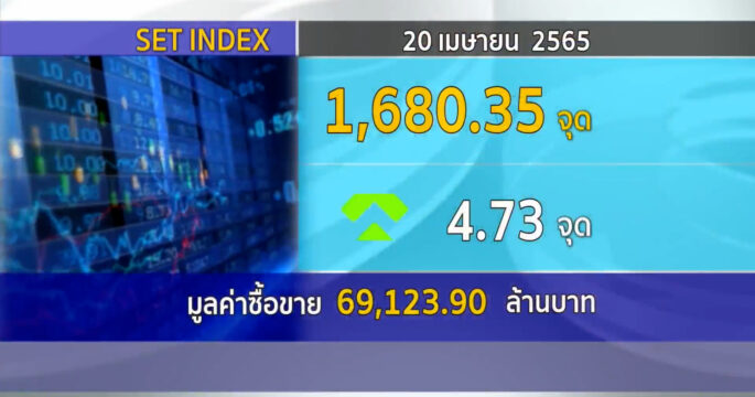 ตลาดหลักทรัพย์ ปิดวันนี้ที่ระดับ 1,682.55 จุด เพิ่มขึ้น 6.93 จุด (+0.41%) มูลค่าการซื้อขายราว 39,548.48 ล้านบาท