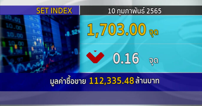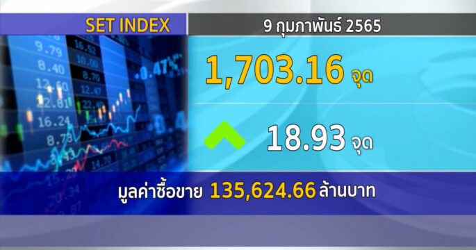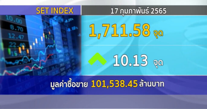ตลาดหลักทรัพย์ ปิดวันนี้ที่ระดับ 1,701.45 จุด เพิ่มขึ้น 16.76 จุด (+0.99%) มูลค่าการซื้อขาย 91,607.43 ล้านบาท หุ้นไทยวันนี้ปรับตัวขึ้นดีกว่าคาด หลังจากสถานการณ์ความตึงเครียดรัสเซีย-ยูเครนคลี่คลาย และยังมีแรงเก็งกำไรในหุ้นรถ EV