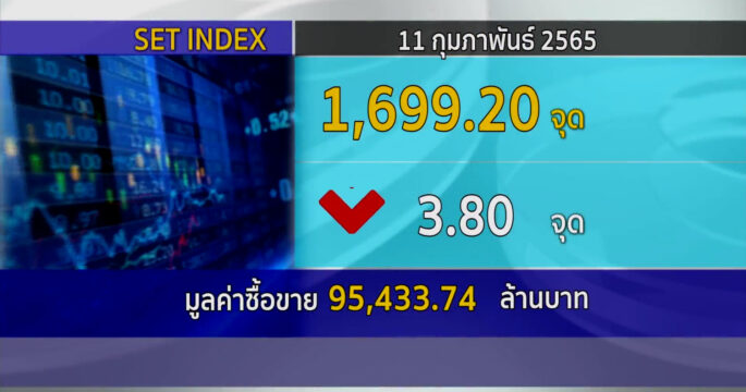 ตลาดหลักทรัพย์ ปิดวันนี้ที่ระดับ 1,699.20 จุด ลดลง 3.80 จุด (-0.22%) มูลค่าการซื้อขาย 95,433.74 ล้านบาท