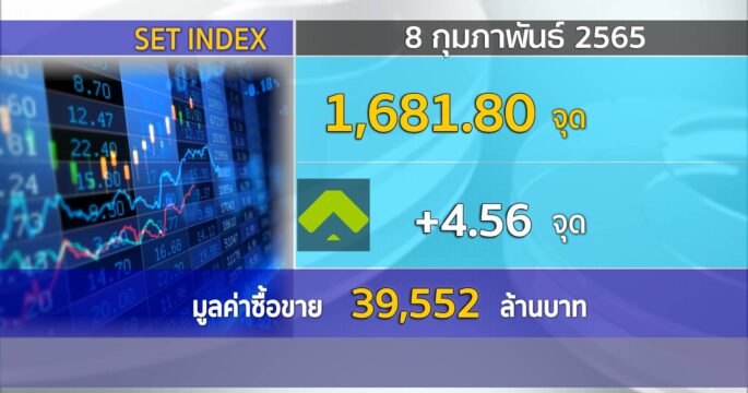 ตลาดหลักทรัพย์ฯ ปิดช่วงเช้าวันนี้ที่ระดับ 1,681.80 จุด เพิ่มขึ้น 4.56 จุด (+0.27%) มูลค่าการซื้อขายราว 39,552 ล้านบาท