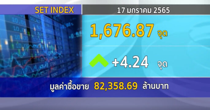 ตลาดหลักทรัพย์ ปิดวันนี้ที่ระดับ 1,676.87 จุด เพิ่มขึ้น 4.24 จุด (+0.25%) มูลค่าการซื้อขาย 82,389.00 ล้านบาท หุ้นไทยวันนี้เคลื่อนไหวอยู่ในแดนบวก สอดคล้องกับตลาดหุ้นอื่นในภูมิภาคเอเชีย เนื่องจากยังไม่มีปัจจัยใหม่