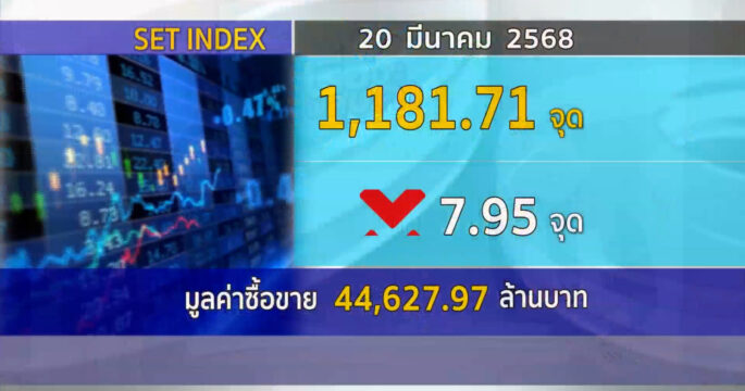 SET ปิดวันนี้ที่ 1,181.71 จุด ลดลง 7.95 จุด (-0.67%) มูลค่าซื้อขาย 44,645.06 ล้านบาท