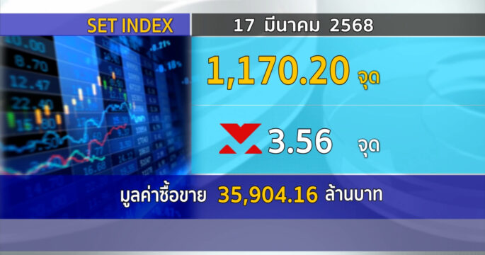SET ปิดวันนี้ที่ 1,170.20 จุด ลดลง 3.56 จุด (-0.31%) มูลค่าการซื้อขาย 35,927.23 ล้านบาท