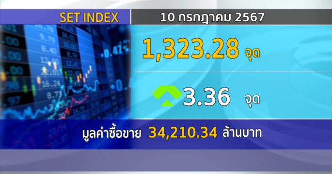 SET ปิดวันนี้ที่ 1,323.28 จุด เพิ่มขึ้น 3.36 จุด (+0.25%) มูลค่าการซื้อขาย 34,265.13 ล้านบาท